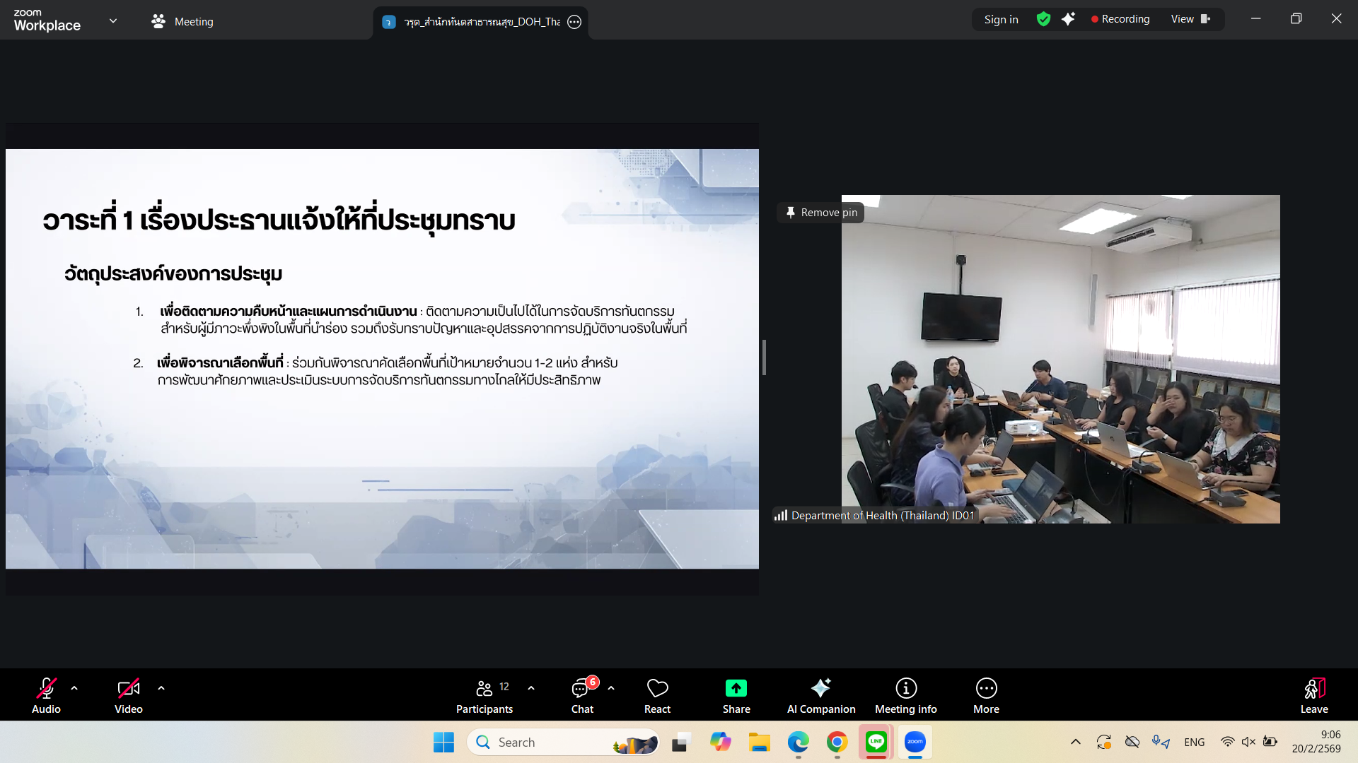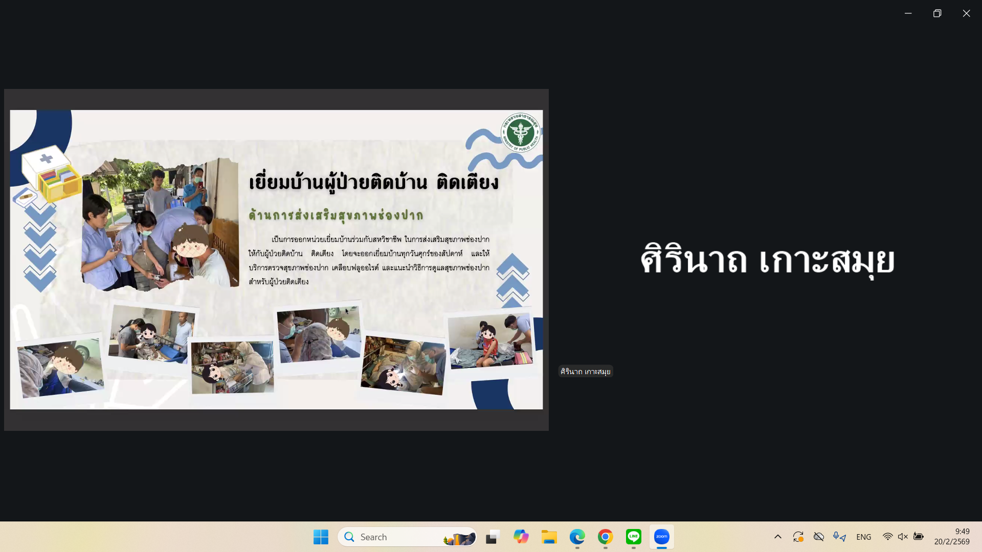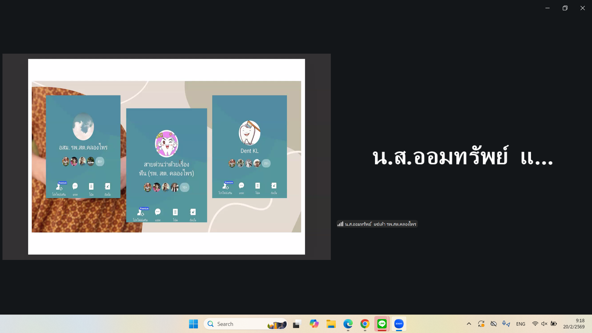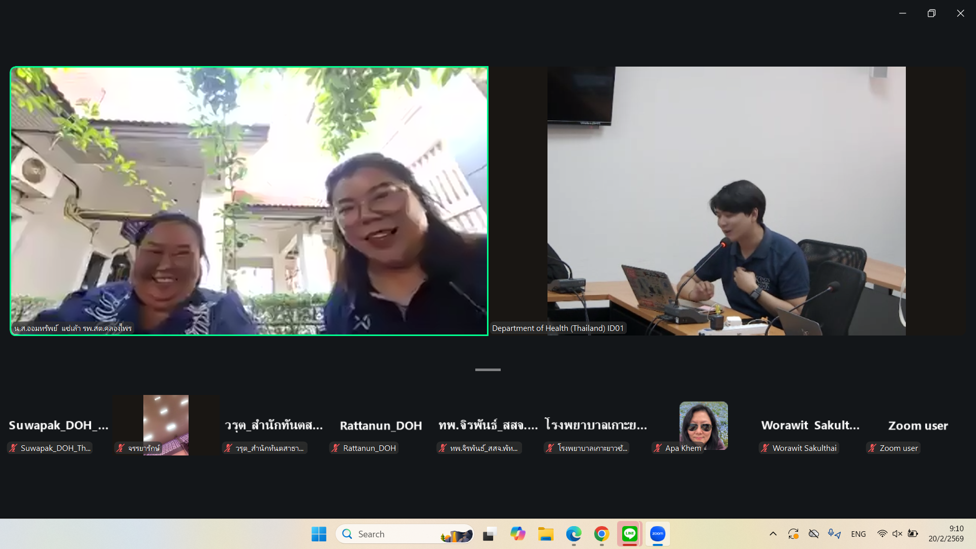 เมื่อวันที่ 20 กุมภาพันธ์ 2569 ผู้อำนวยการสำนักทันตสาธารณสุข มอบหมายให้ ทพญ.วรมน อัครสุต เป็นประธานการประชุมติดตามผลการจัดบริการทันตกรรมทางไกลในพื้นที่เป้าหมาย ณ ห้องประชุมสำนักทันตสาธารณสุข และผ่านระบบออนไลน์ Zoom Cloud Meetings สำนักทันตสาธารณสุข กรมอนามัย เพื่อยกระดับการเข้าถึงบริการทางทันตกรรมสำหรับประชาชนด้วยเทคโนโลยี โดยเฉพาะกลุ่มผู้มีภาวะพึ่งพิงในพื้นที่เป้าหมาย
