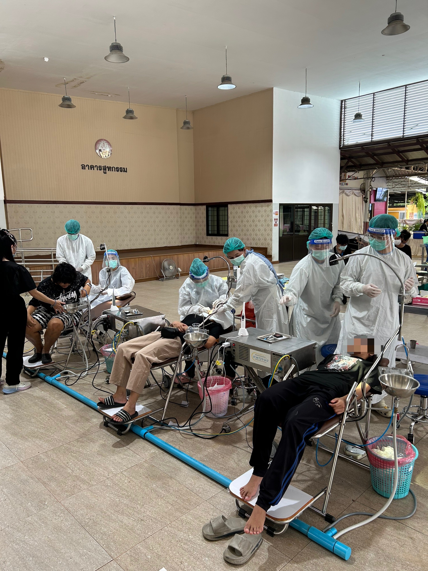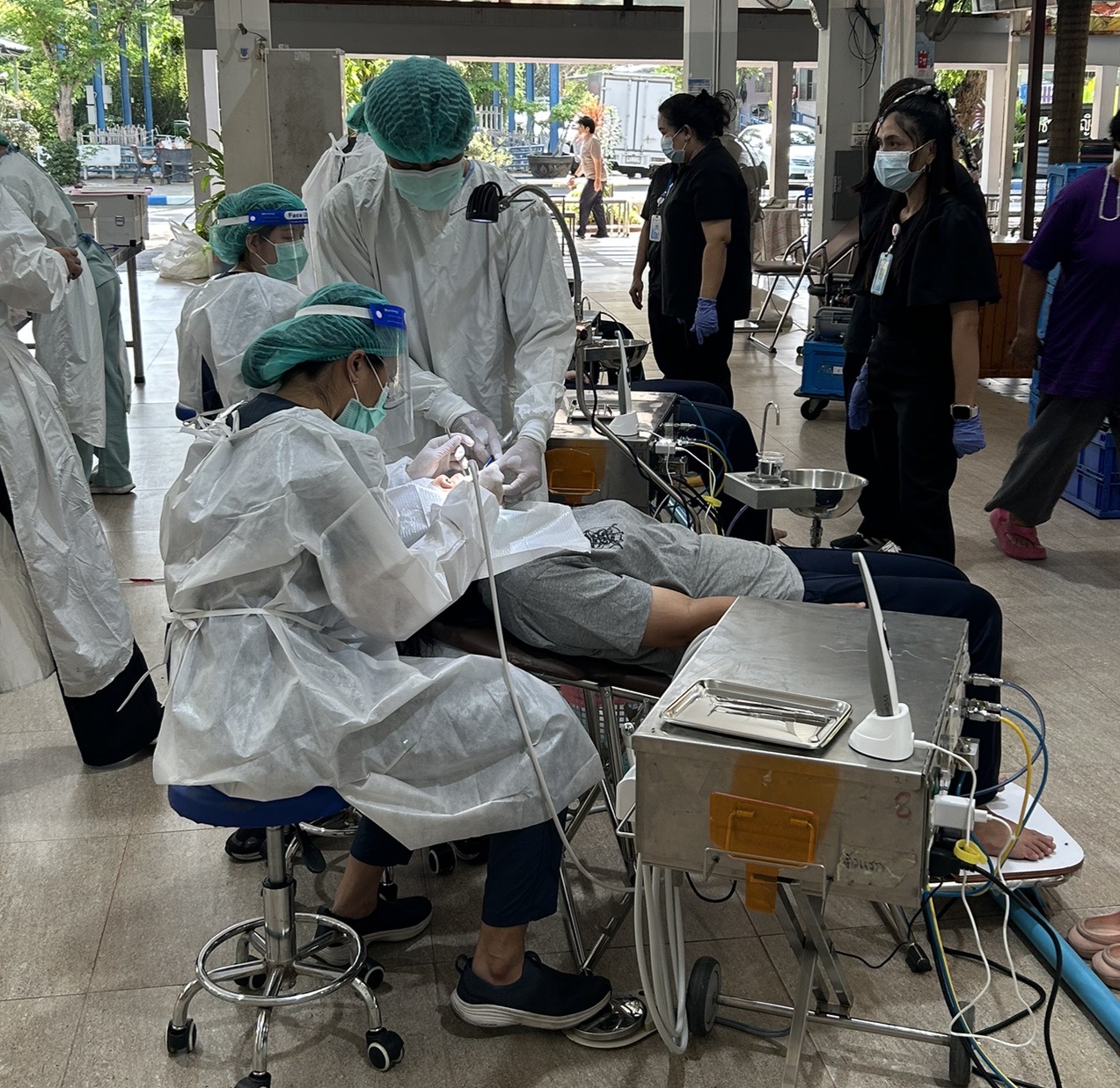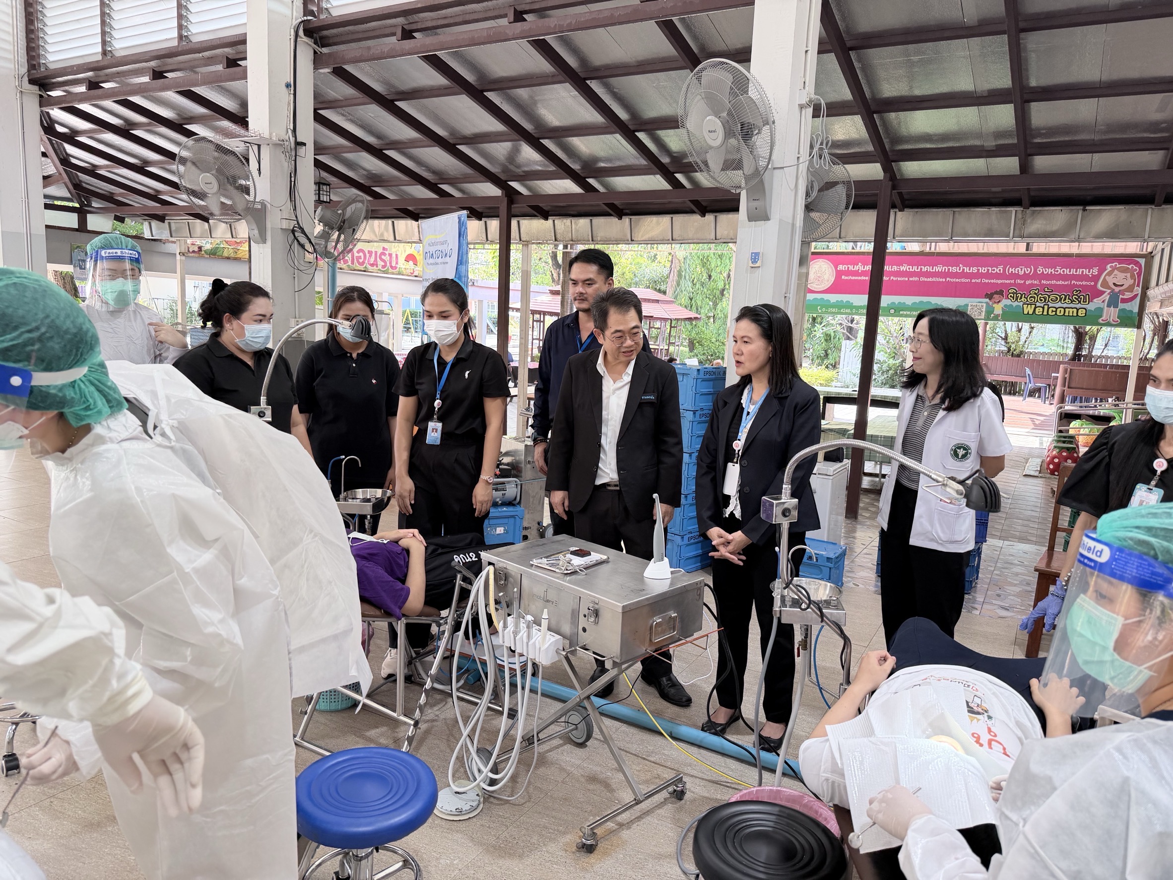 ร่วมจัดหน่วยทันตกรรมเคลื่อนที่เชิงรุก โดยรถทันตกรรมเคลื่อนที่ และหน่วยทันตกรรมภาคสนาม ให้บริการส่งเสริมป้องกันสุขภาพช่องปากและบริการทันตกรรมพื้นฐาน ได้แก่ อุดฟัน ขูดหินน้ำลาย ถอนฟัน ในกลุ่มเปราะบาง ณ สถานคุ้มครองและพัฒนาคนพิการบ้านราชาวดีหญิง จังหวัดนนทบุรี จำนวน 80 คน