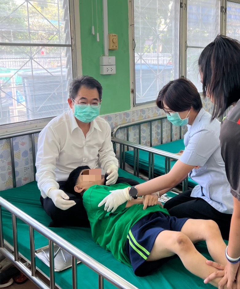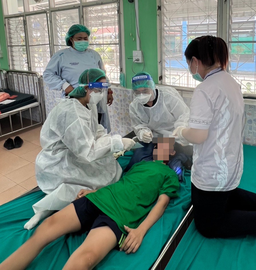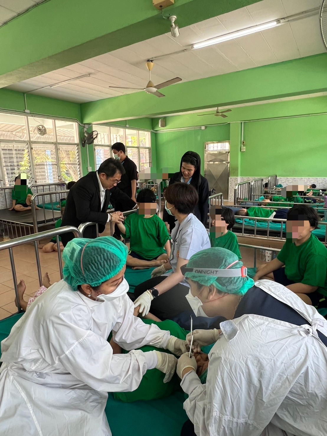 ภายใต้โครงการความร่วมมือ “พบหมอฟัน ห่างไกลฟันผุ” ร่วมกับบริษัทคอลเกต - ปาล์มโอลีฟ (ประเทศไทย) จำกัด ในจัดบริการทันตกรรมเชิงรุกในสถานคุ้มครองและพัฒนาคนพิการ