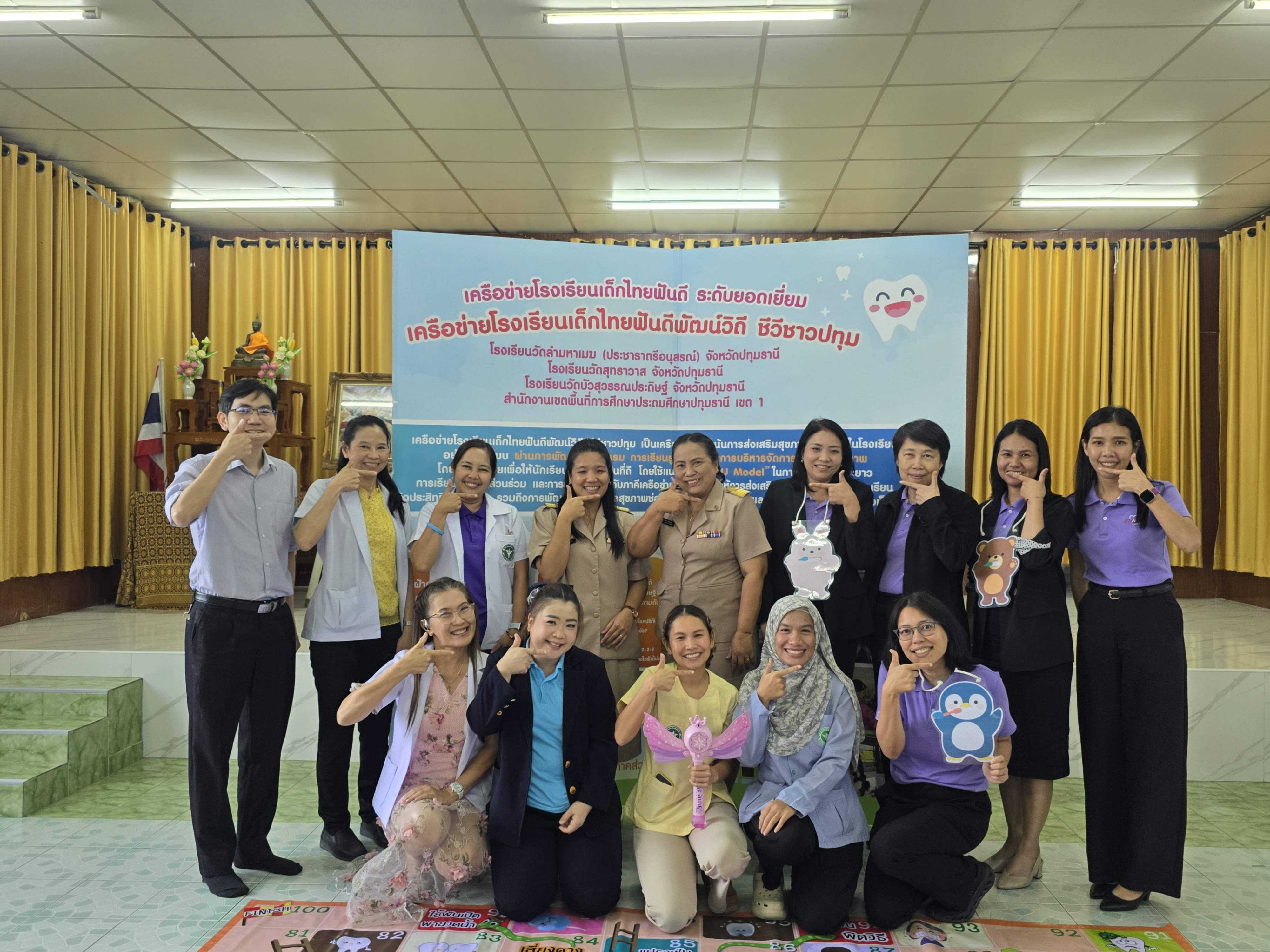 วันที่ 8 กันยายน 2568 กลุ่มพัฒนาทันตสุขภาพวัยรุ่นและปัจจัยเสี่ยง ร่วมกับ ศูนย์อนามัยที่ 4 สระบุรี และสำนักงานสาธารณสุขจังหวัดปทุมธานี ลงพื้นที่เยี่ยมเสริมพลังและติดตามการจัดบริการสุขภาพช่องปากผู้ป่วยเบาหวาน และติดตามผลการดำเนินงานในสถานประกอบการ ณ จังหวัดปทุมธานี เพื่อติดตามการดำเนินงานสร้างเสริมสุขภาพช่องปากวัยทำงานในสถานประกอบการ และการสร้างความรอบรู้ด้านสุขภาพช่องปาก รวมถึงรับฟังปัญหาอุปสรรค และความต้องการการสนับสนุนจากกรมอนามัย ณ บริษัท ไซโก้ อินสทรูเม้นท์ (ประเทศไทย) จํากัด โรงเรียนวัดลำมหาเมฆ และโรงพยาบาลลาดหลุมแก้ว สำนักงานสาธารณสุขจังหวัดปทุมธานี ได้ดำเนินงานสร้างเสริมสุขภาพช่องปากในบริษัท ไซโก้ อินสทรูเม้นท์ (ประเทศไทย) จํากัด ตั้งแต่ปี 2566 เป็นต้นมา โดยการจัดให้มีการตรวจคัดกรองสุขภาพช่องปากร่วมกับการตรวจสุขภาพประจำปีของสถานประกอบการ การส่งเสริมความรอบรู้ด้านสุขภาพช่องปากผ่านกิจกรรมถามตอบ เพื่อสนับสนุนการดูแลสุขภาพช่องปากของพนักงาน สำหรับการสร้างความรอบรู้ด้านสุขภาพช่องปาก ได้มีการมีการขยายผลการใช้สื่อนวัตกรรมเกมส์บันไดงู โรงเรียนวัดลำมหาเมฆ ไปยังเครือข่าย 8 จังหวัด ในเขตสุขภาพที่ 4